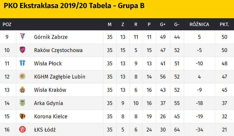 Pko Ekstraklasa Zobacz Koncowa Tabele Grupy Spadkowej Sport Tvp Pl