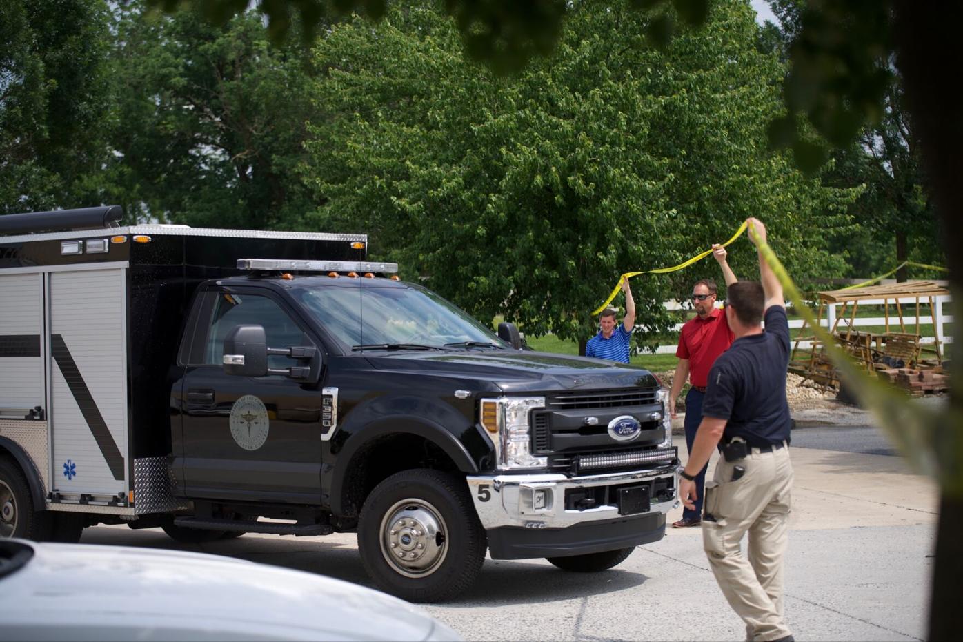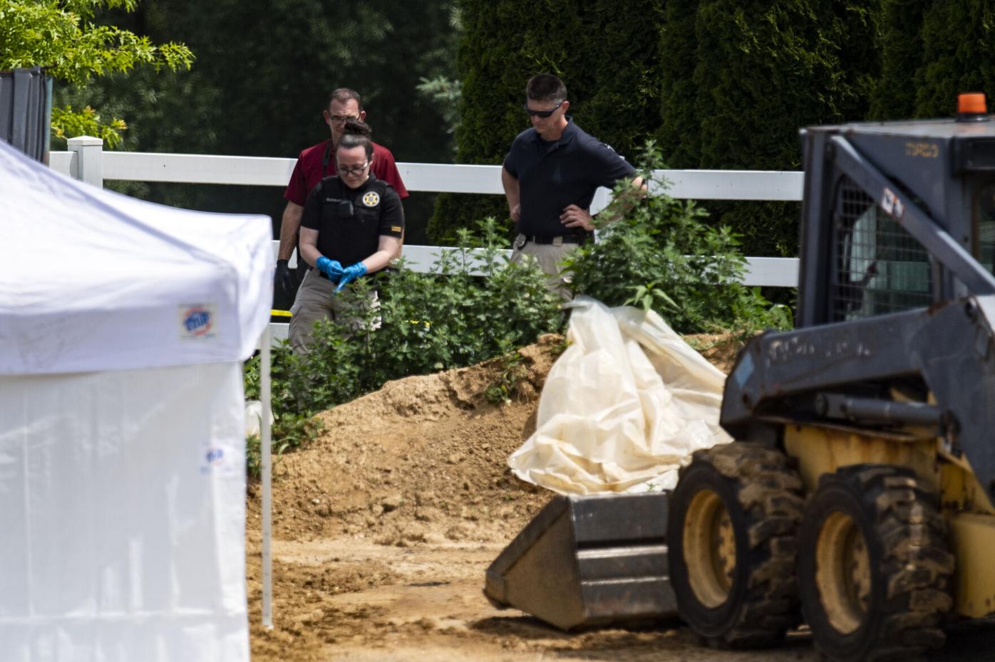 The discovery was made by an employee of a nearby business. WHTM On Wednesday morning around 9 am. Someone with the Lancaster County Coroners Office and detectives with East Lampeter Township police are seen at the location where human remains were found on Wednesday June 9 2021.